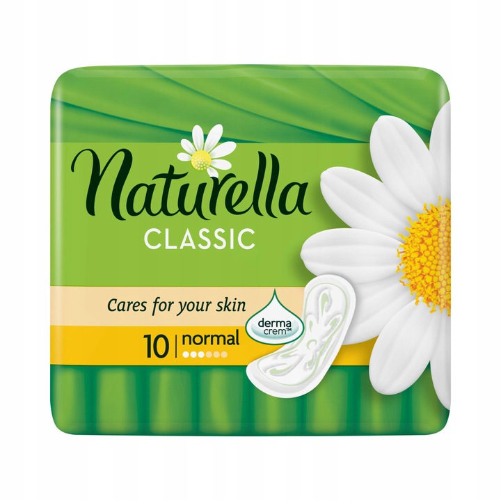 Podpaski Naturella Classic Normal mają rumiankową kompozycję zapachową i specjalny system chłonny z kwiatowym wzorem, który odprowadza wilgoć i utrzymuje ją z dala od skóry, dzięki czemu będziesz czuła się sucho i komfortowo.