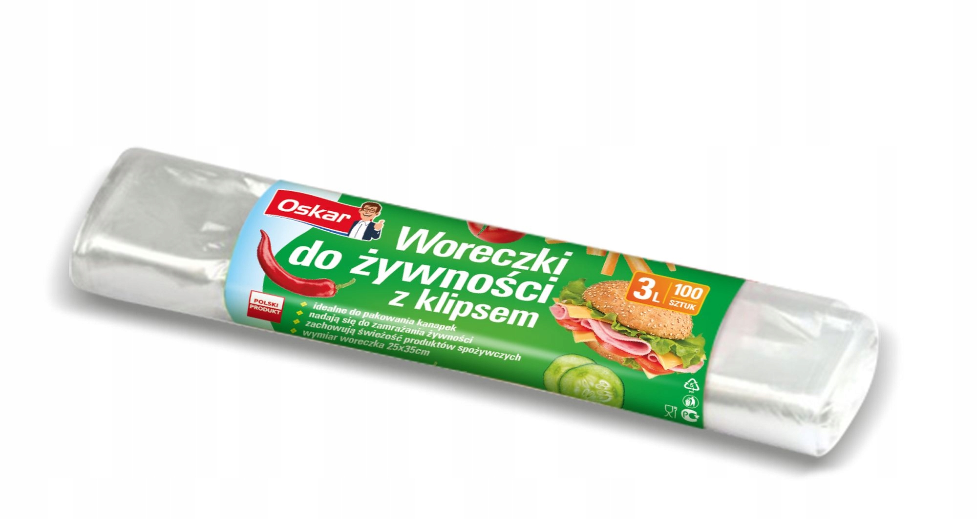 OSKAR WORECZKI DO ŻYWNOŚCI Z KLIPSEM 3 L 100SZT