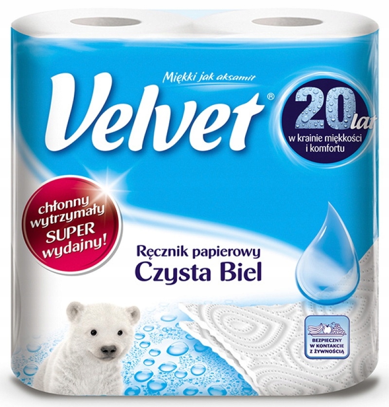 Ręcznik papierowy Velvet Czysta Biel jest chłonny i wytrzymały 2 sztuki