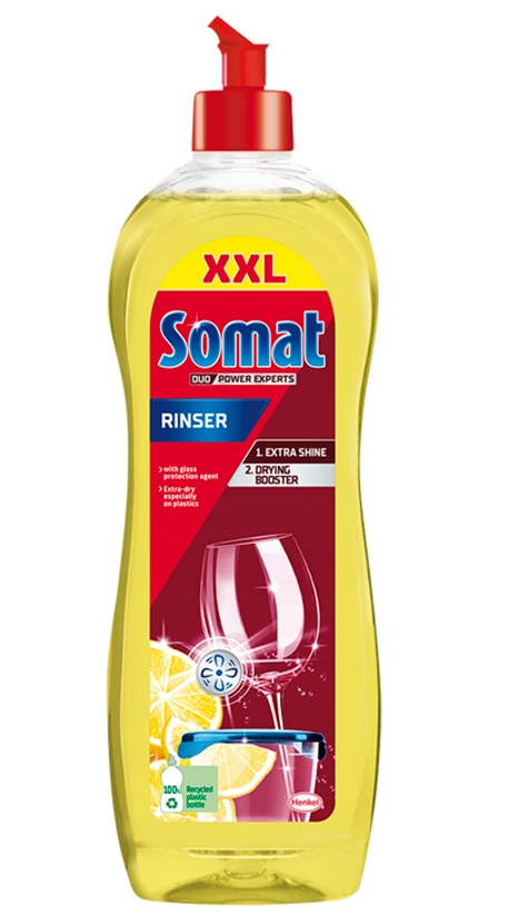 Dzięki Nabłyszczaczowi Somat Twoje naczynia będą krystalicznie czyste. Nabłyszczacz Somat zmiękcza wodę, sprawiając, że równomiernie spływa ona z naczyń. Dzięki temu naczynia schną szybciej, bez zacieków czy kamiennego osadu. Twoje naczynia są lśniące i bez zacieków.